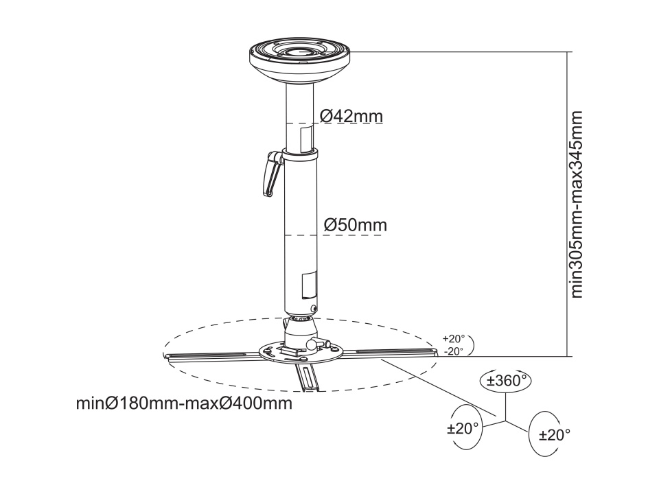 Beamer Deckenhalter, Metall, weiss, max 30 kg