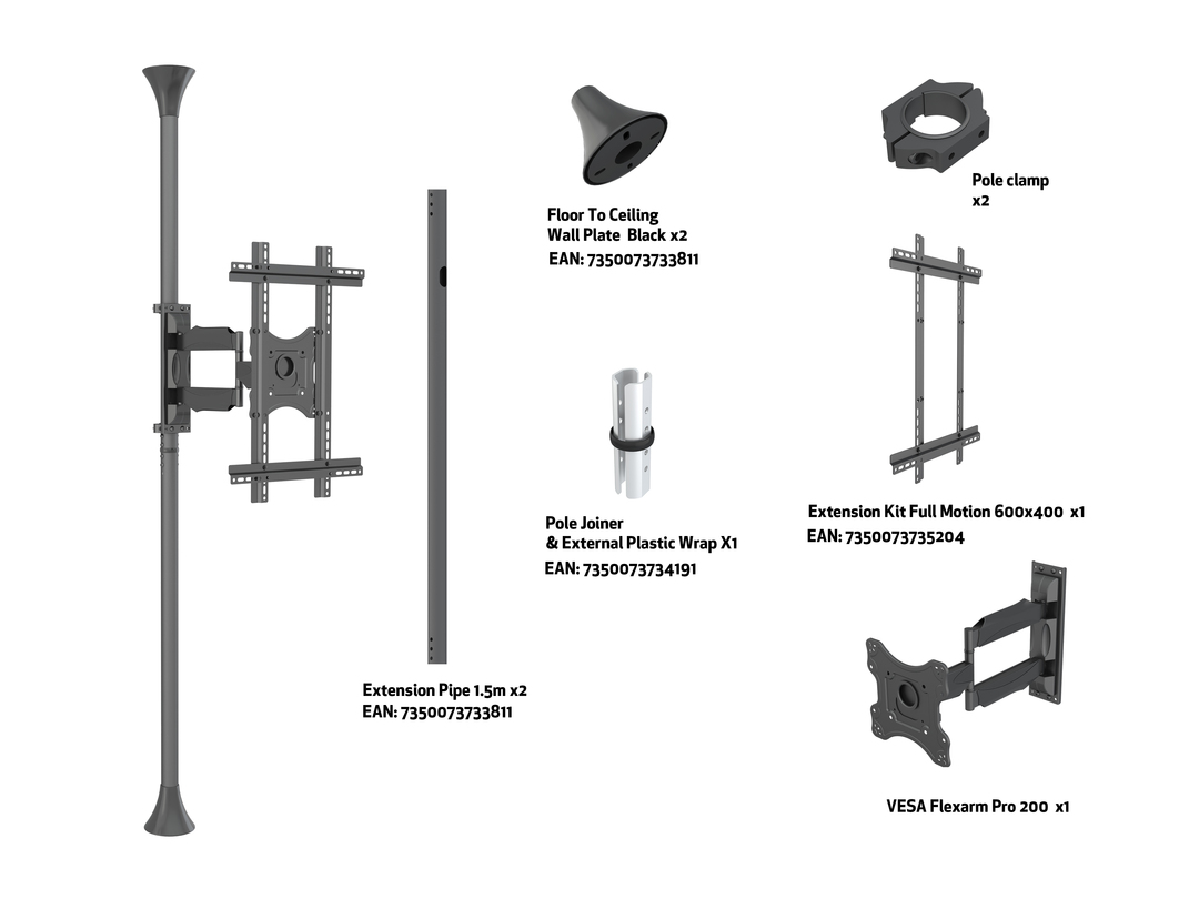 Boden-Deckenhalter 1x, 40"-65", VESA 100x100