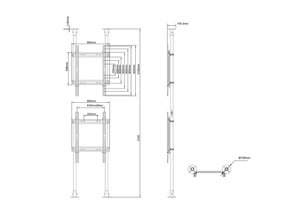 VESA 200-200-600x900, schwarz, max 2x125kg