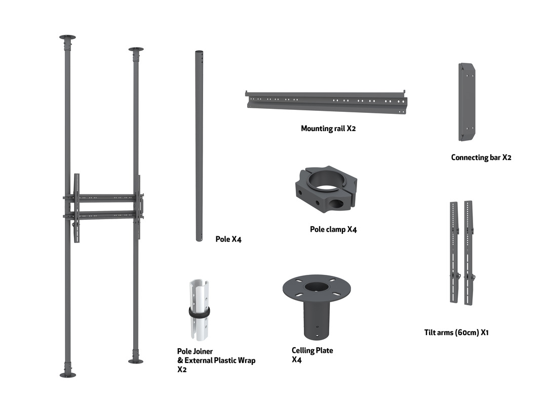 Boden-Deckenhalter mit Dopperrohr, VESA 200x