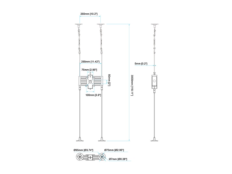 bis max 3000mm länge, Portrait oder Landscape, Metall/Aluminium/PVC, 51.5x15x15cm,
