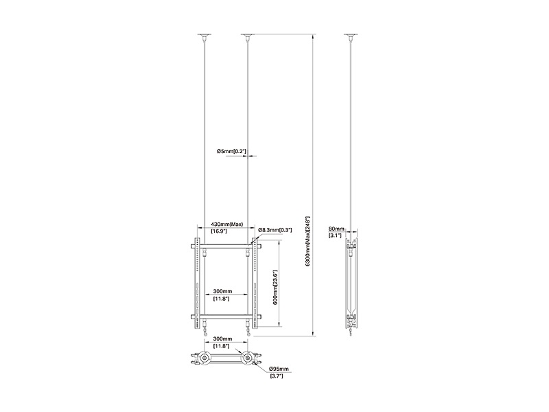Decken Halter 32-65" B2B mit Stahlseile, Metall
