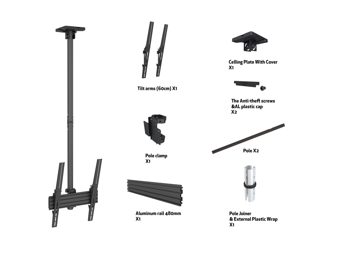 Deckenhalter 1x, 40"-70", VESA 100x100 - 400x