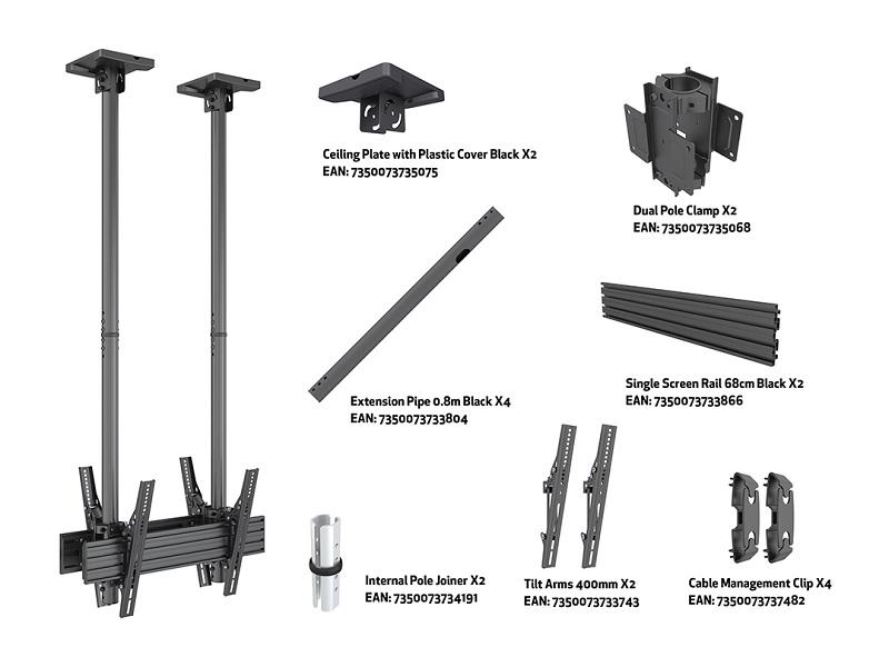 Deckenhalter 2x 40-86", schwarz, max 2x120kg
