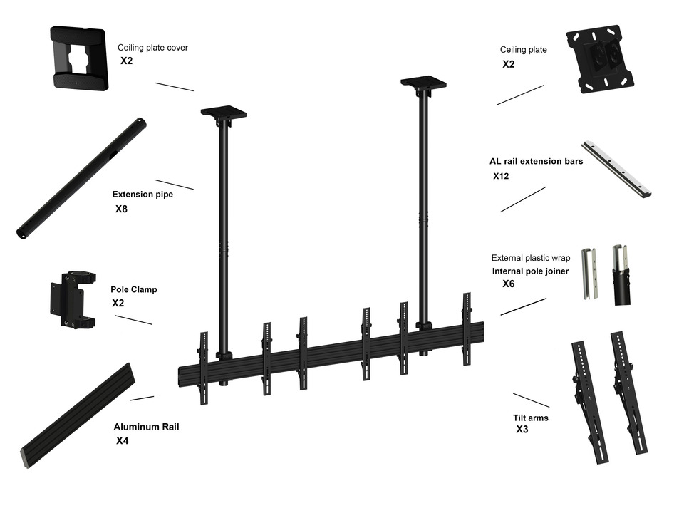 Deckenhalter 3x, 40"- 65", schwarz, VESA 100x