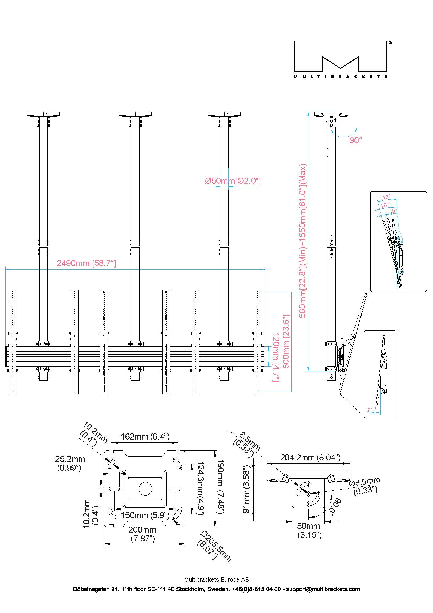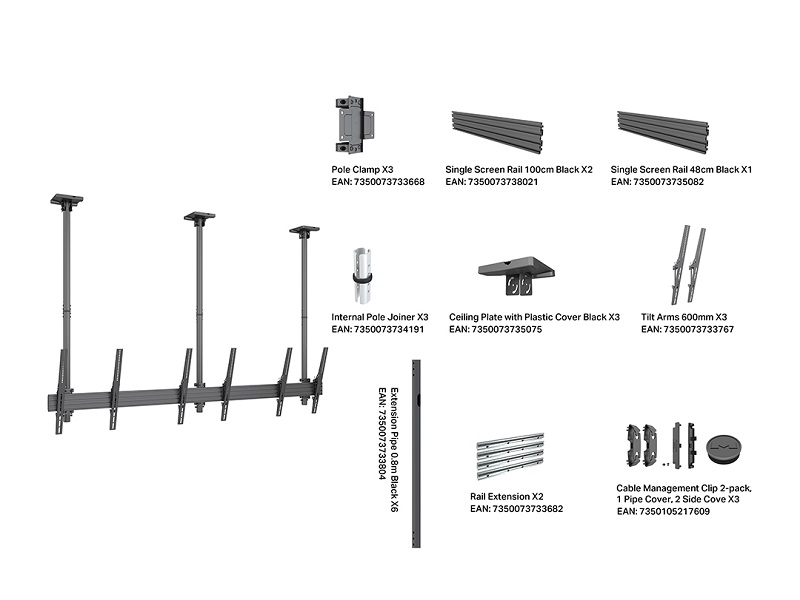 Deckenhalter 3x, 50"-75", schwarz, VESA 100x