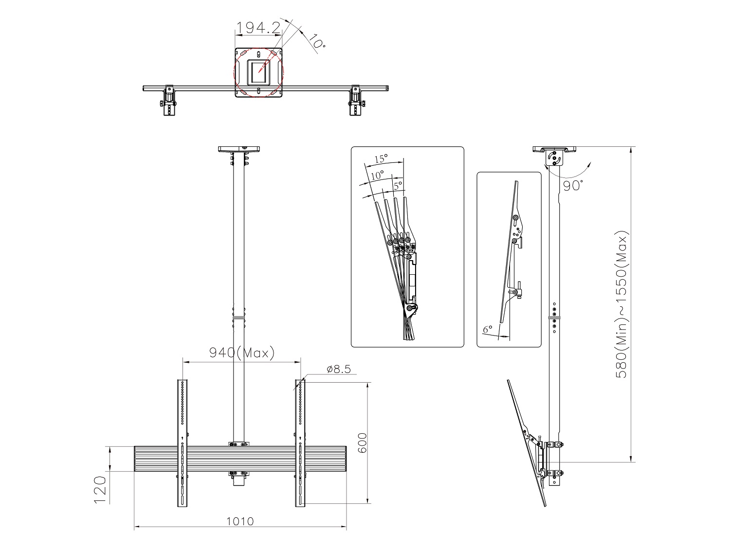 Deckenhalter, 40" - 100", schwarz, max 135 kg