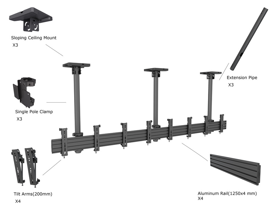 Deckenhalter 4x, 30"-42", schwarz, VESA 100x