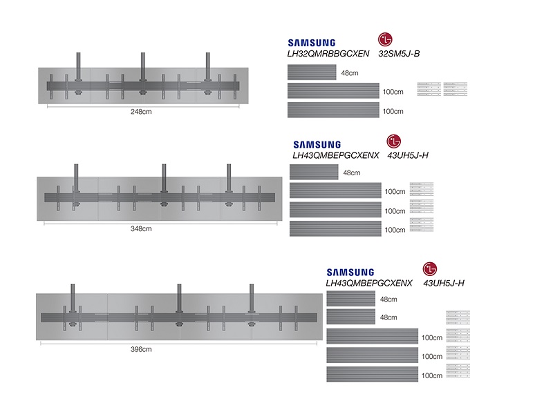 Deckenhalter 4x, 32"- 50", schwarz, VESA 100x