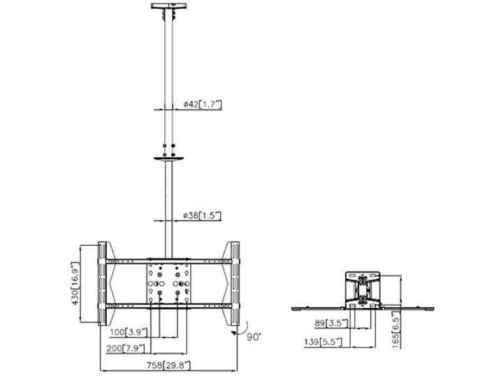 Deckenhalter 55" - 70", Stahl, weiss, max 40 kg