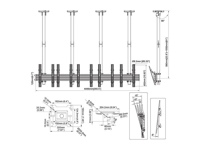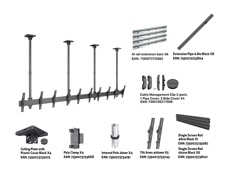Deckenhalter 5x, 40" - 65", schwarz, VESA 100x