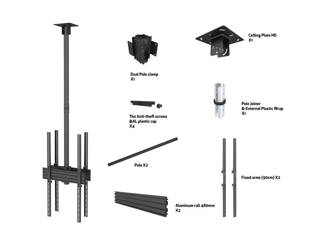 Powered by Smartsupp Deckenhalter Back to Back, 42" - 75", schwarz | MProDeckenhalter6928