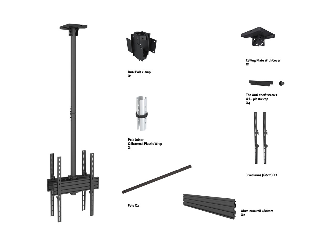 VESA 100-400x600,Stahl/Aluminium,max 2x40Kg