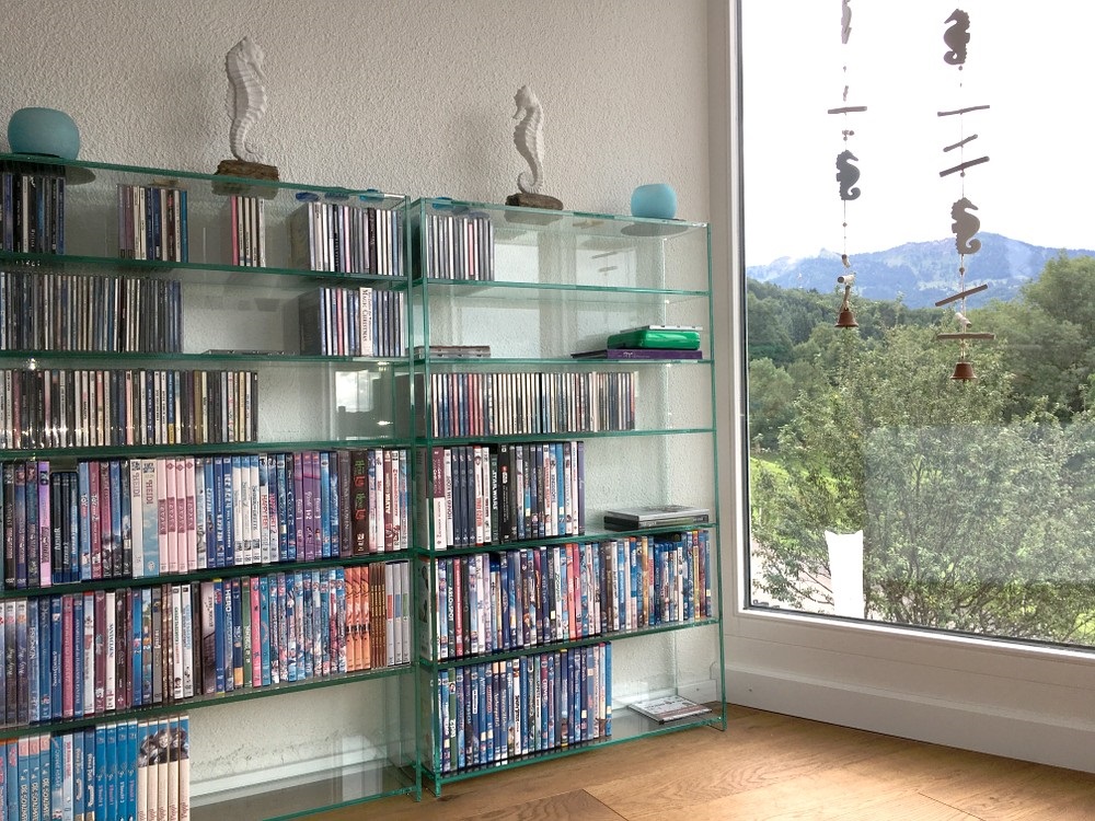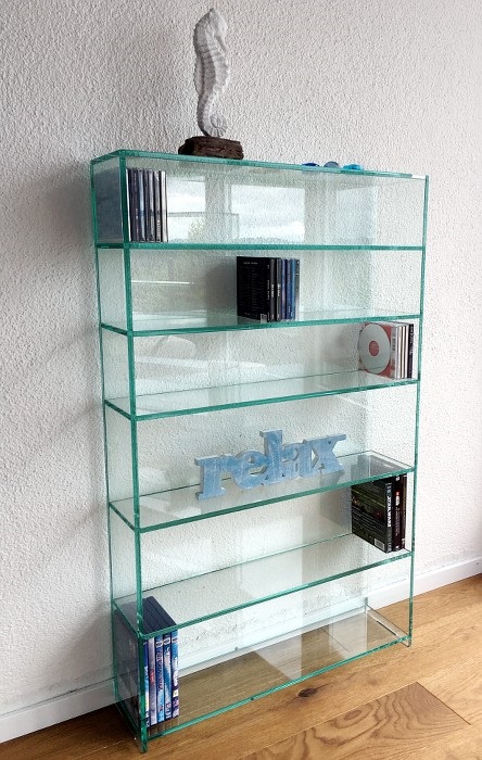auf Stoss verklebt, 10mm Glas, 6 Tablare (3xCD/