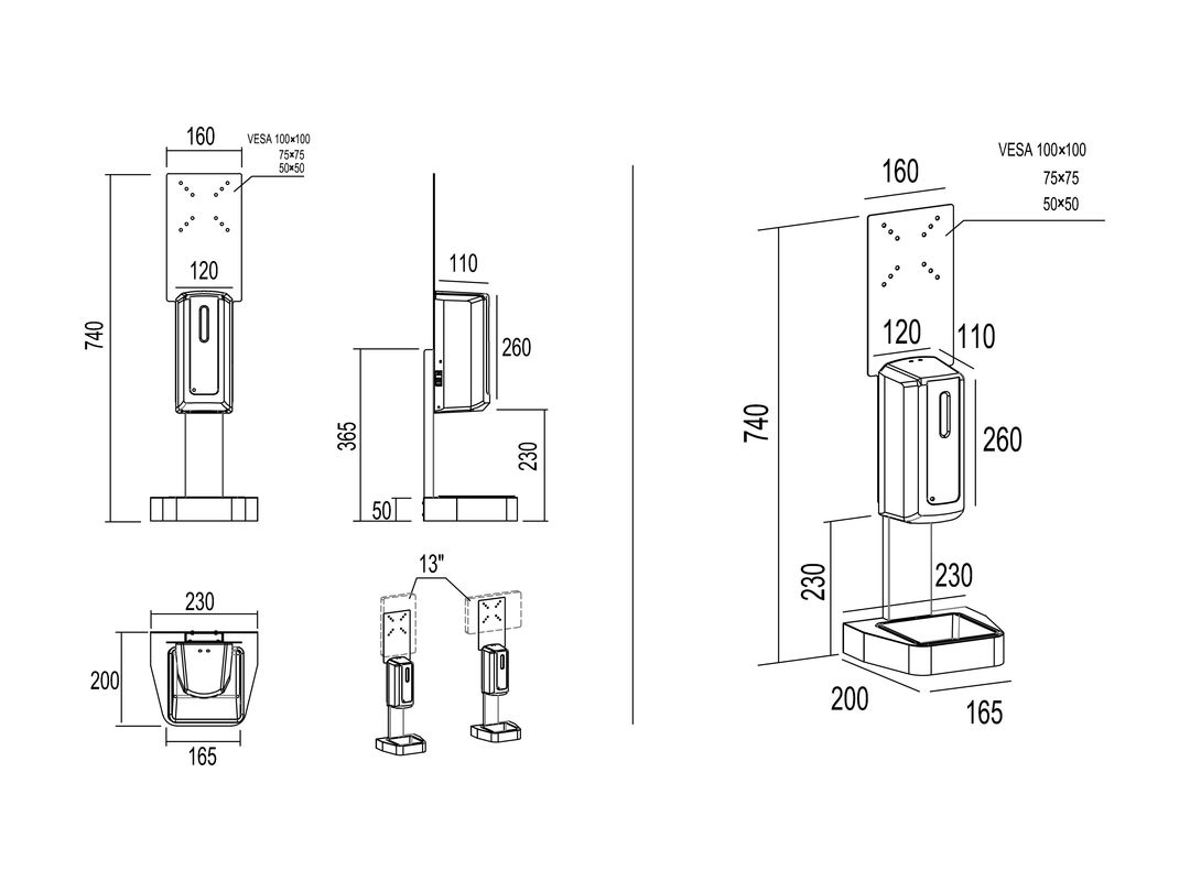 Batterien, Adapter 6V, mit VESA Monitorplatte,