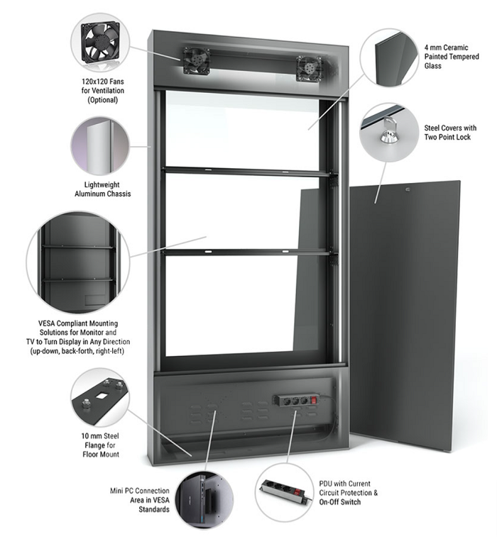 4mm, abschliessbar, Vesa Halterung, Ventilation