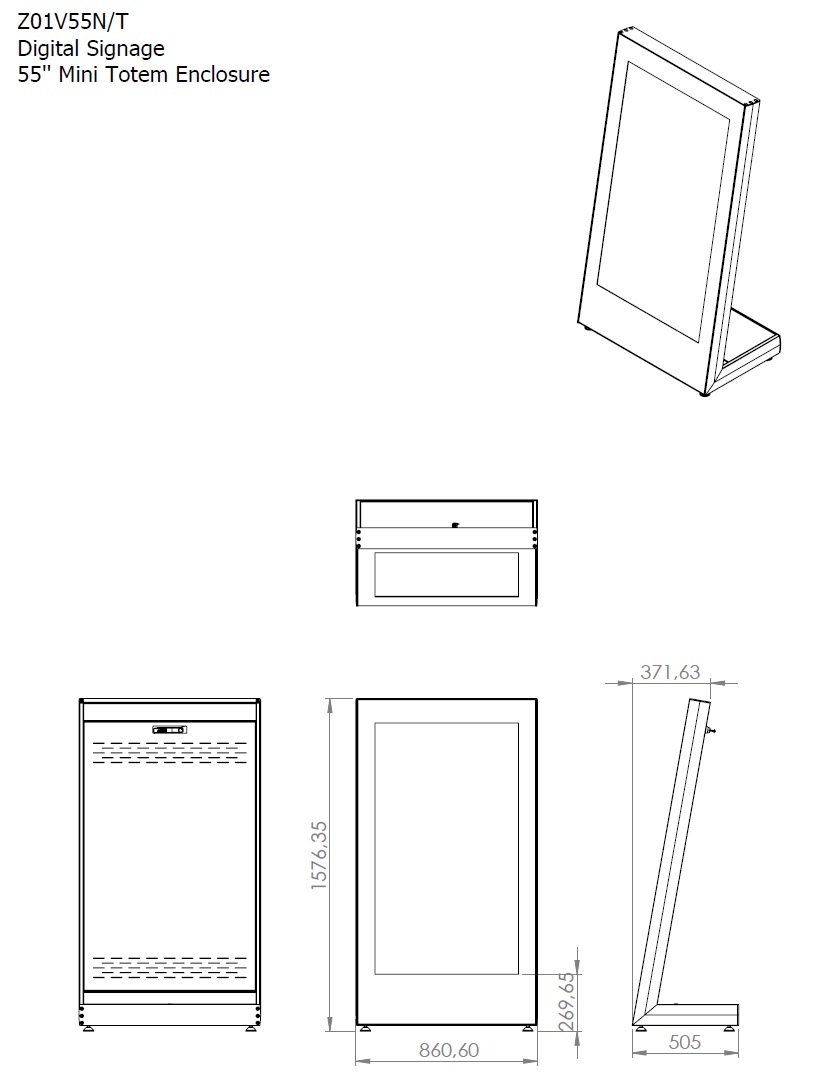 Indoor Stele Portrait, 55" Bildschirm, schwarz