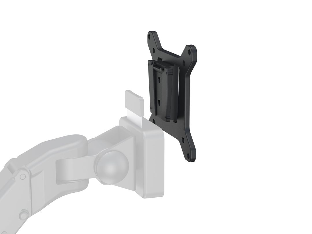 VESA 75x75-100x100mm und rasten diese am Schnappverschluss des Tischständer ein