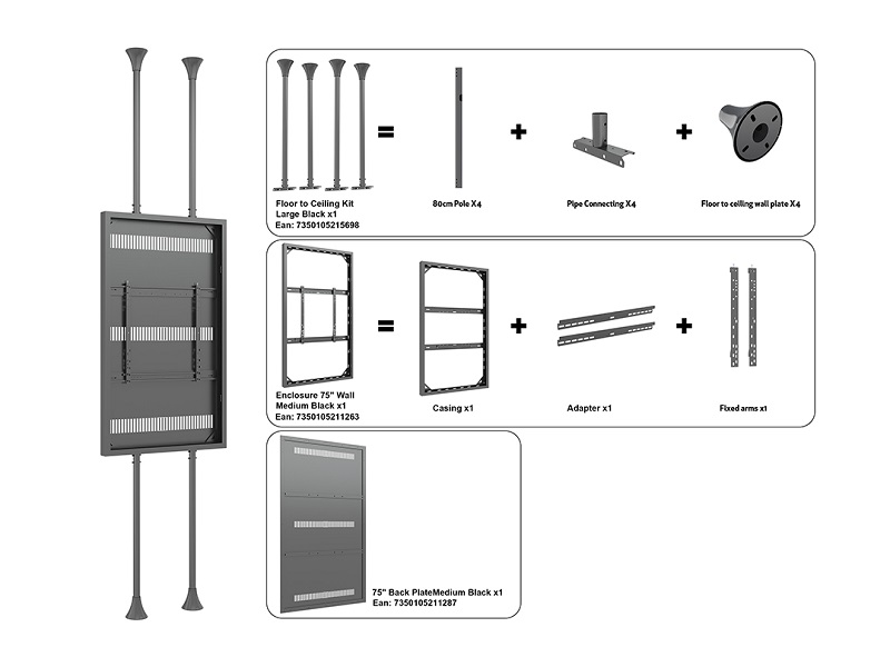 Monitor Rahmen, Boden-Deckenmontage, 75"