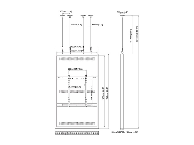 Monitor Rahmen, Deckenmontage, 75"/3748