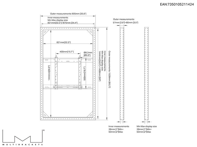Monitor Rahmen Slim, Wandmontage, 65"/1424