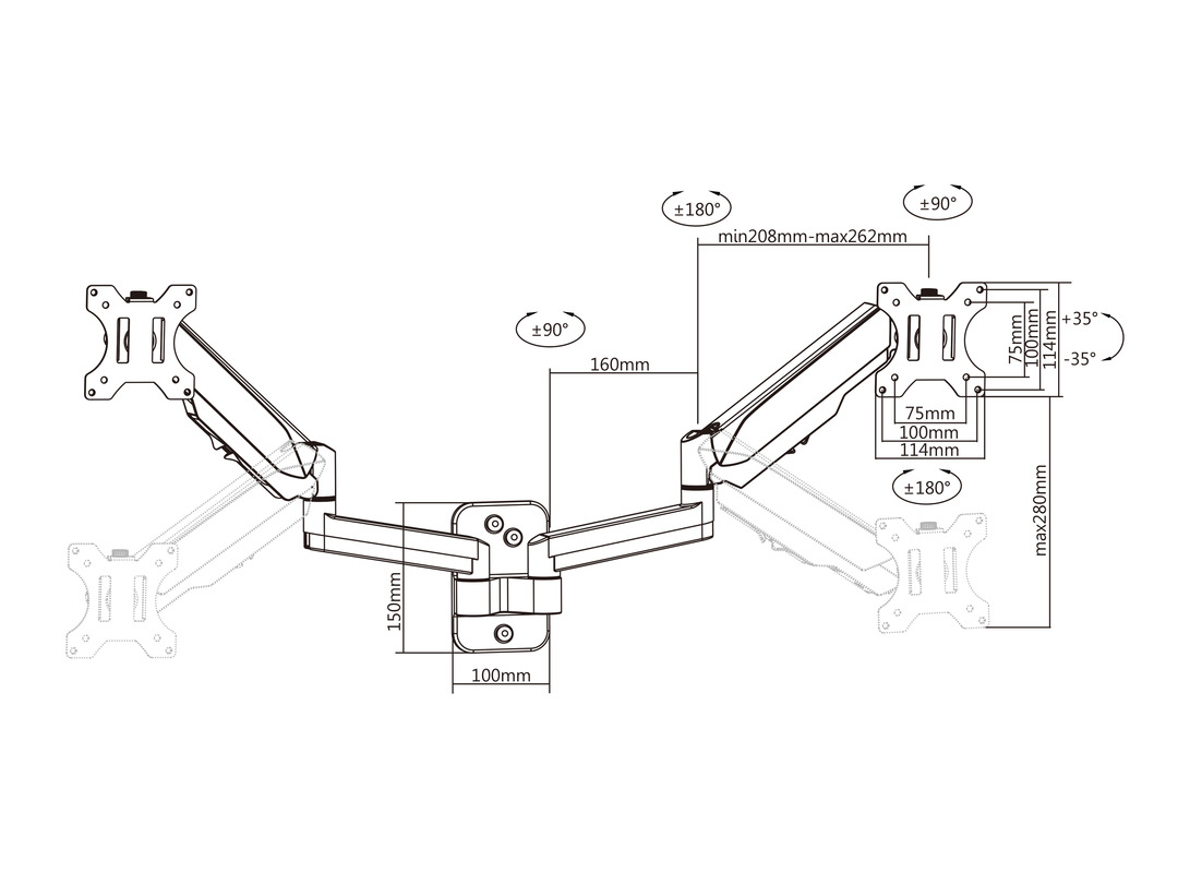 Höhe min/max 280mm, min 2 x 2kg - 8kg