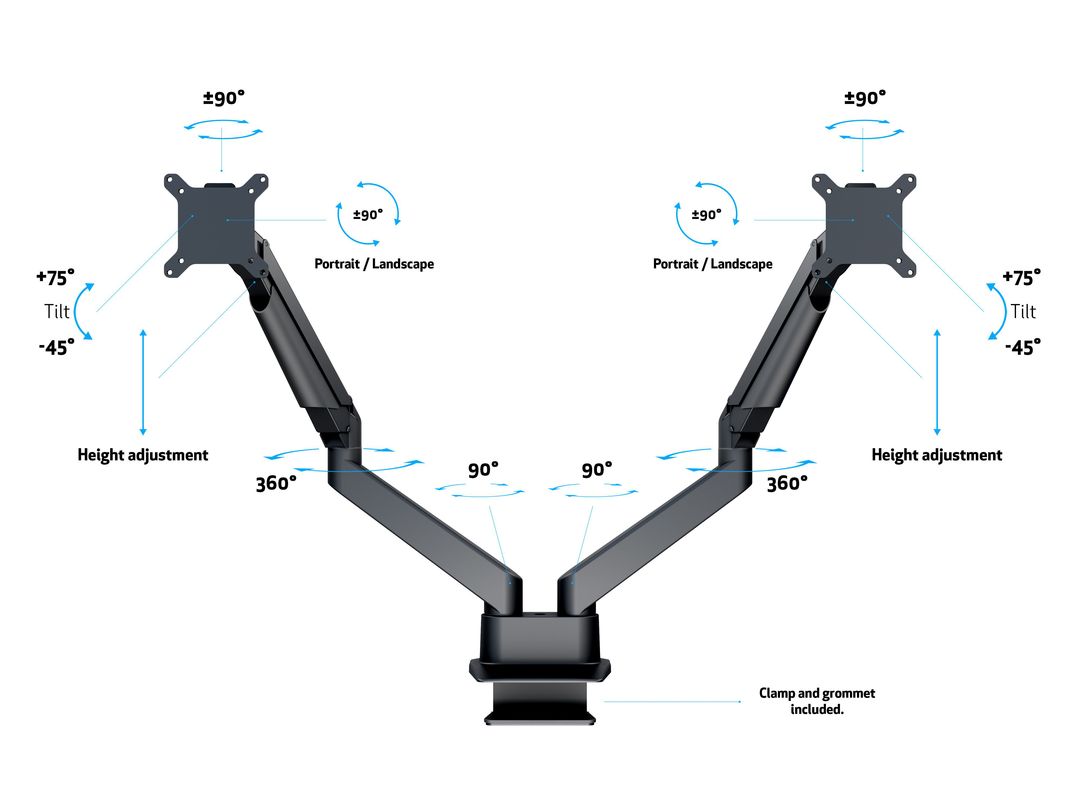 VESA 100x100, min 2 x 2kg - max 2 x 10kg