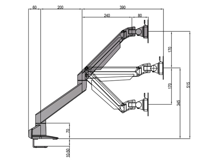 2 Arm 3 Gelenke, Höhe 65-515 mm, Hub 170 mm