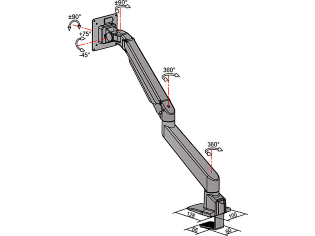 Monitorhalter mit Gasfeder bis 32", silber, Metall
