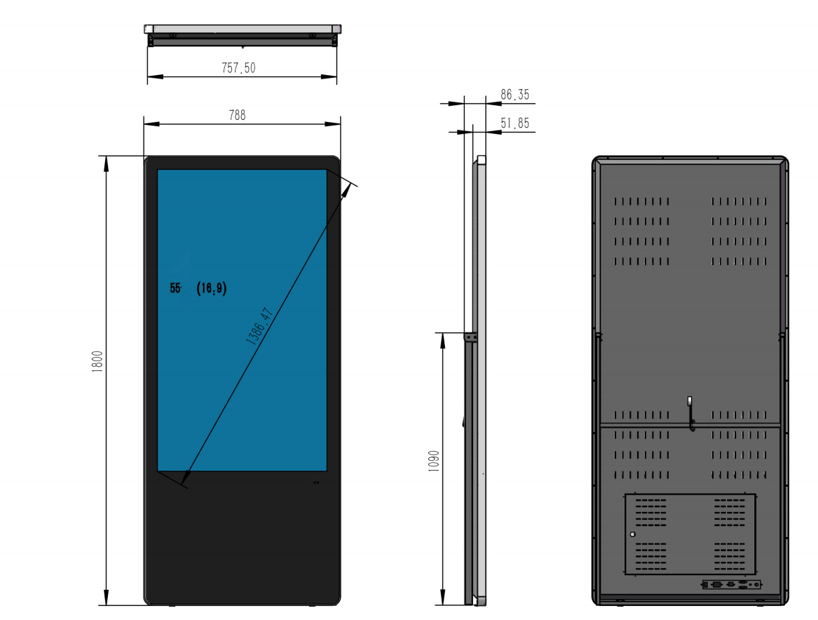 4000:1, abschliessbar, 4mm Sicherheitsglas, Anschlüsse:1xVGA, 1x SD,1xHDMI, Media Format: MPEP1/2/4,AVI, RM, WMV, DAT, JPEG, BMP,