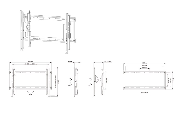 Push-Wall Halterung, 43-75", Metall, schwarz