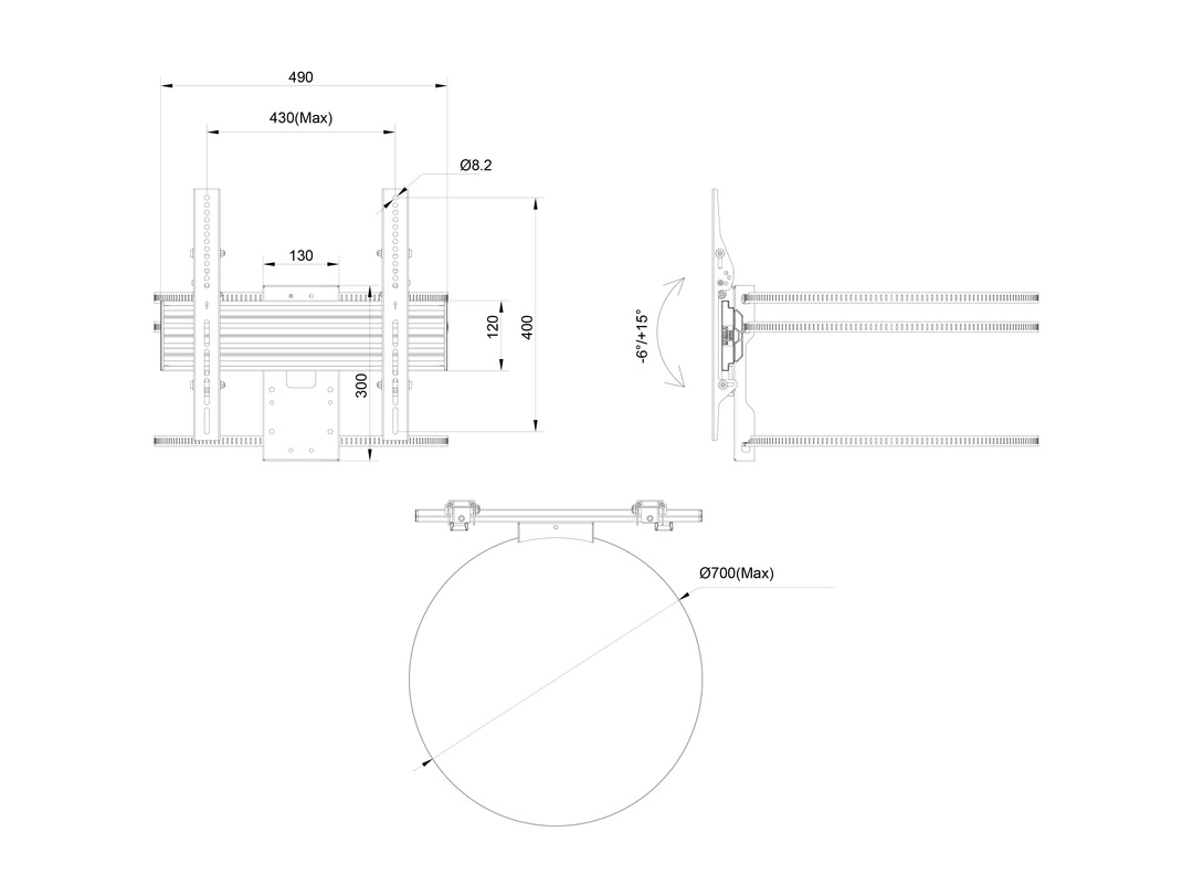 Höhenverstellbar 10mm, Max. Ø 700mm,
