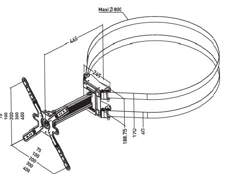 VESA 75x75-400x400, max. 30 kg, 2 Gelenk,