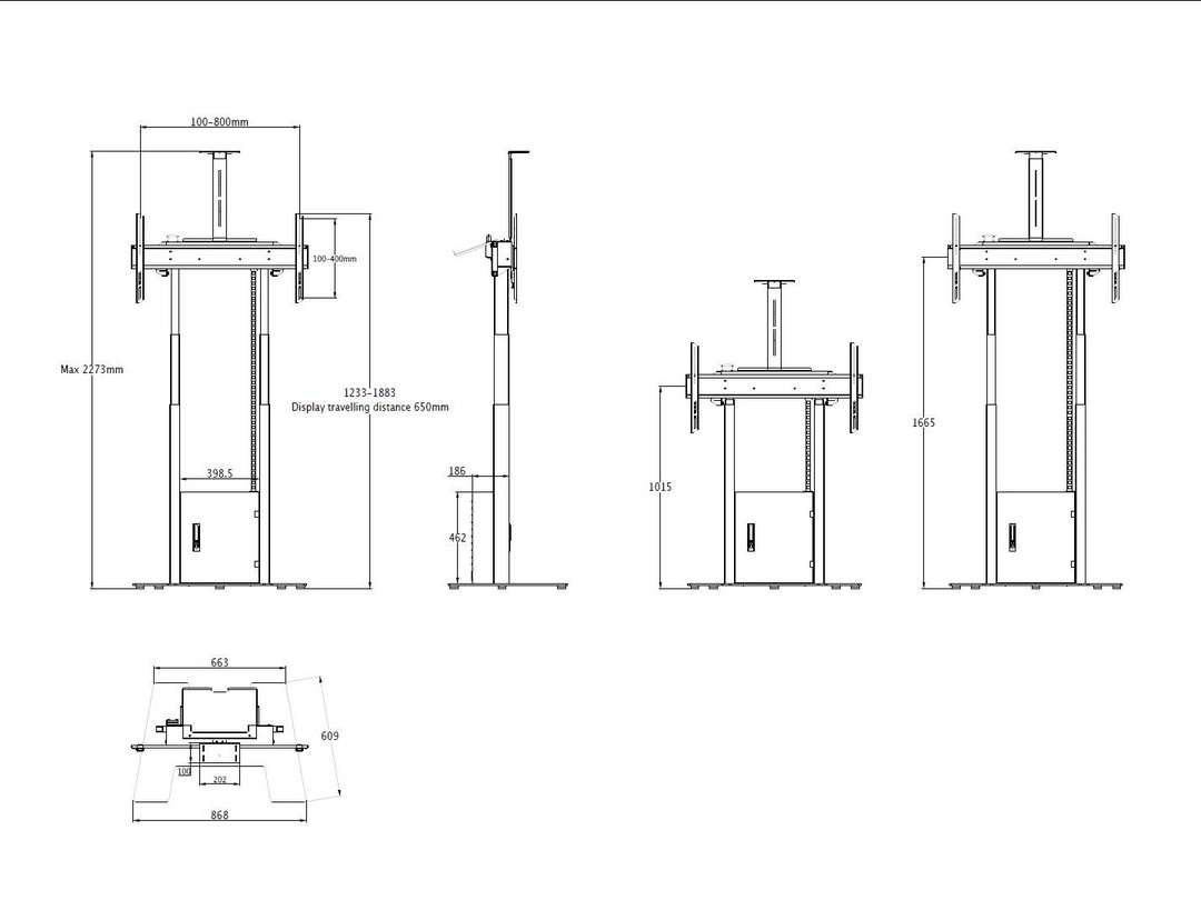 elektrischer TV-Ständer mit fixer Bodelnplatte,
