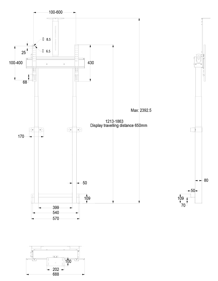 Standfuss elektr, 43-86", max. 50 kg, schwarz