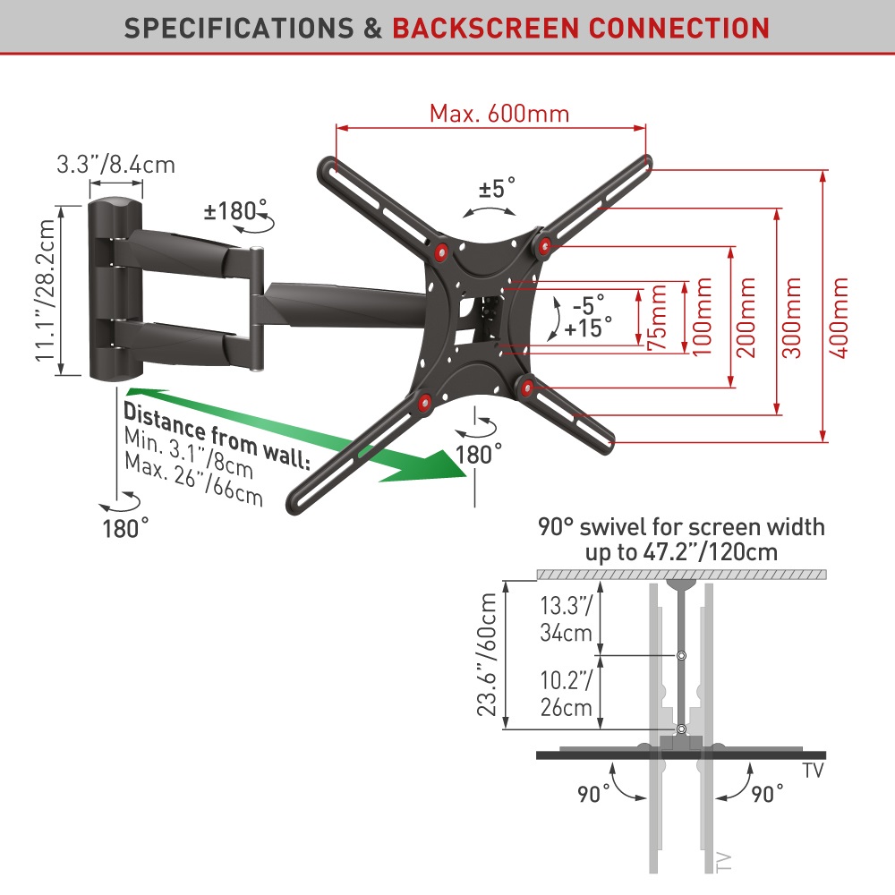 1 Arm, Wandabstand 80-660 mm, horizontale