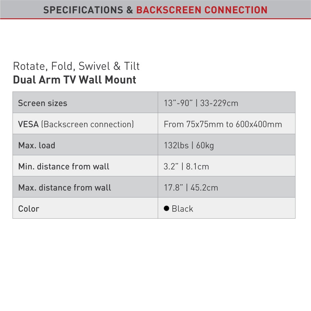 Tragkraft max 60 kg, VESA 75x75-600x400