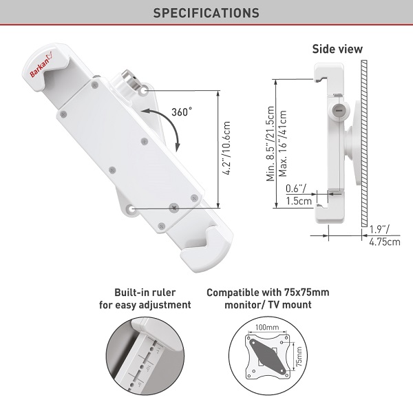 VESA kompatibel 75x75, min 21.5 - max 41cm