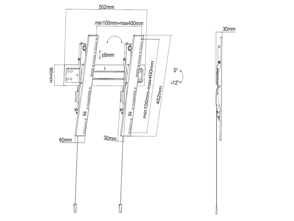 VESA 100x100-400x400mm, Metall, Ultra Slim