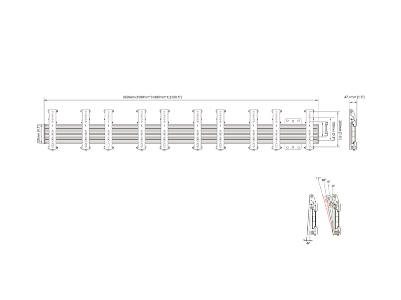 10mm höhenverstellbar, Masse104.5x16.5x15cm,