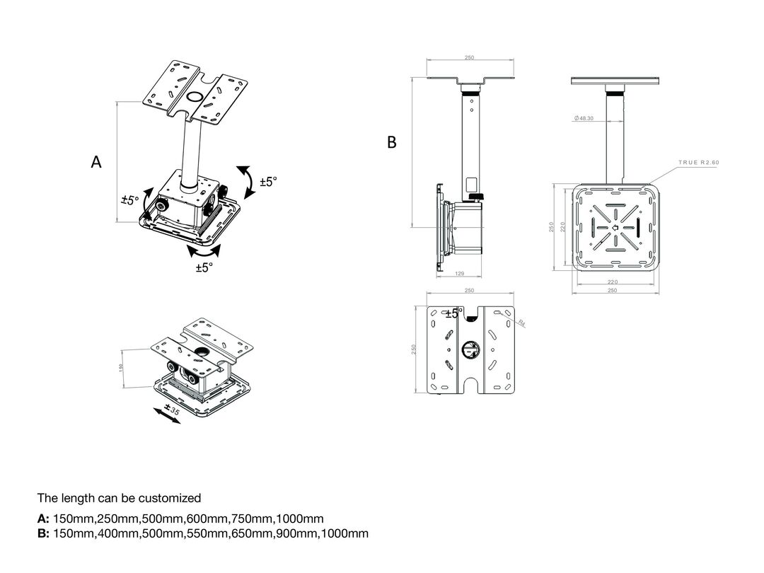 Beamer Deckenhalter HD, Metall, Tragkraft 40kg