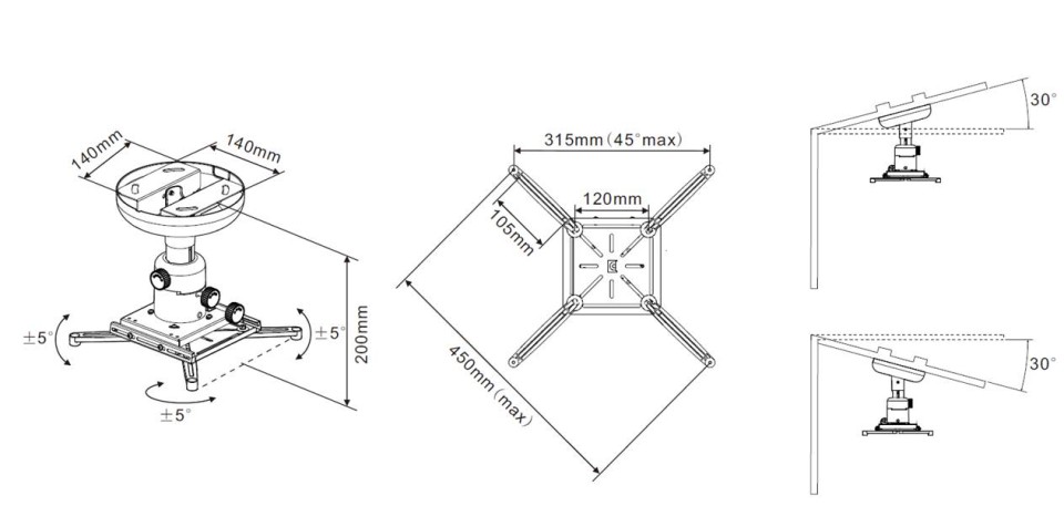 Beamer Deckenhalter, Metall, weiss, max 10 kg
