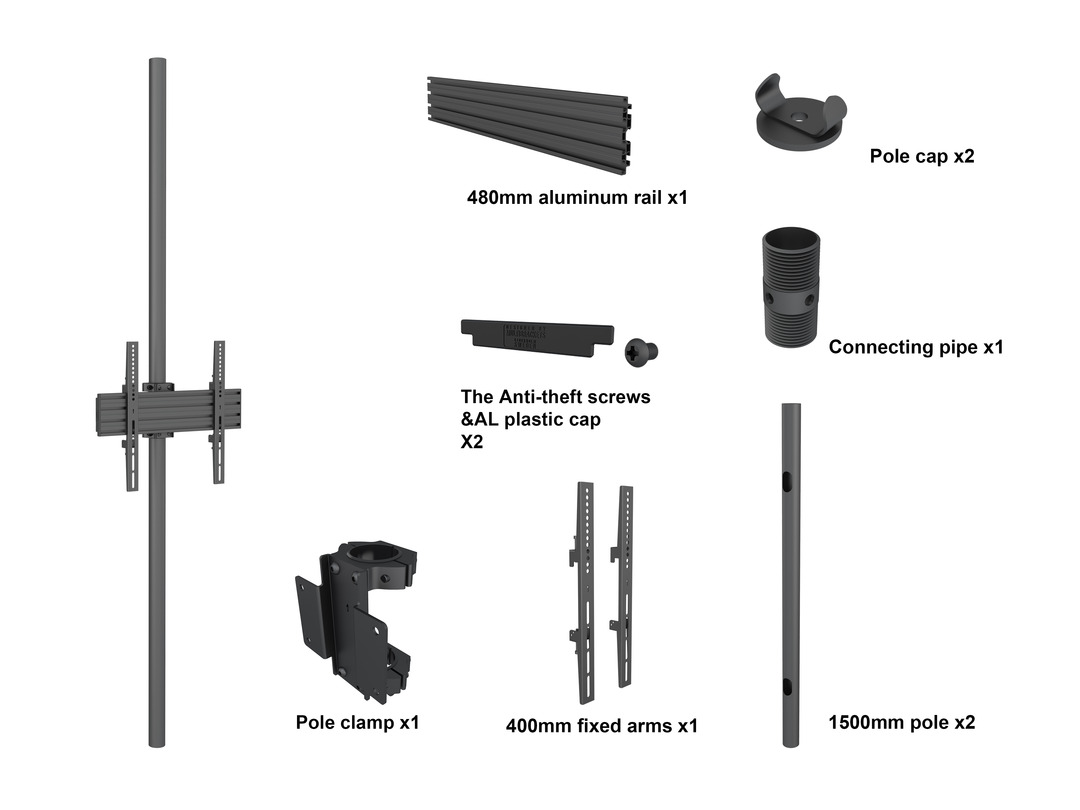 2x1500mm Rohre, neigbar 15°, drehbar 360°, Kabelmanagement, inkl. Zubehör, Optional Ver-