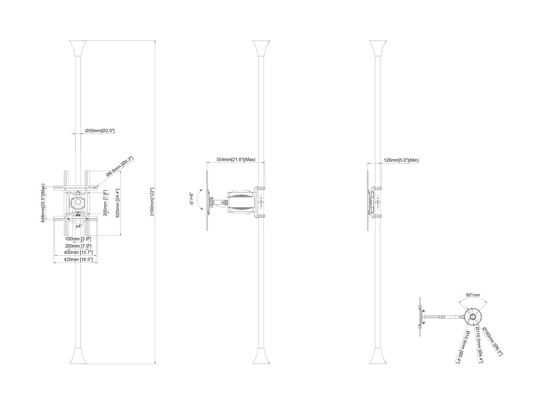 Boden-Deckenhalter 1x, 40"-65", VESA 100x100