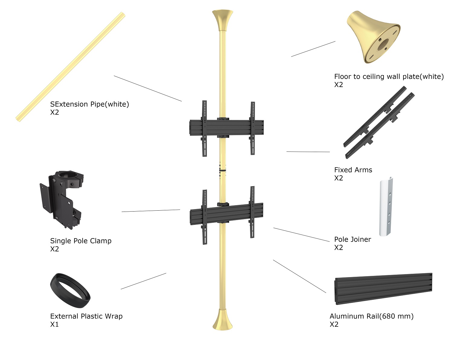 Boden-Deckenhalter 2x, 40"-65", max 2x30 kg