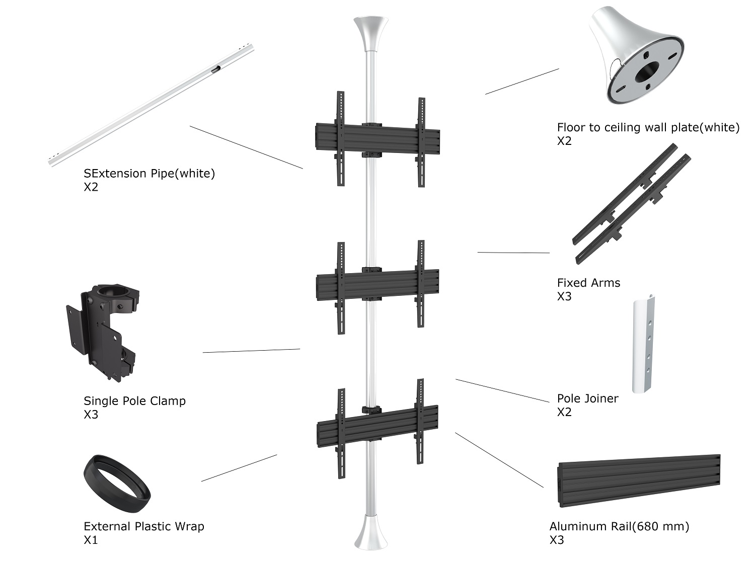 Boden-Deckenhalter 3x, 40"-65", VESA 100x100