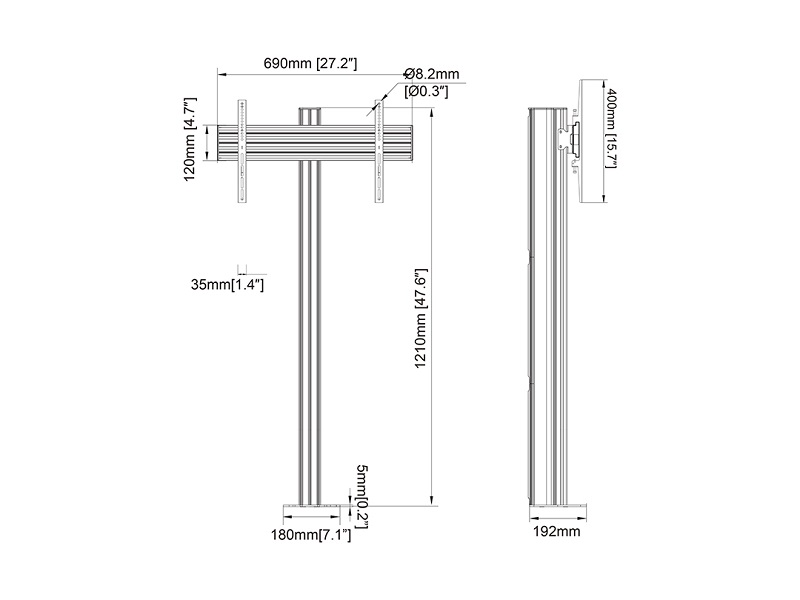 120cm, integrierte Kabelführung, stufenlose Höhenverstellung, inkl. Montage Set