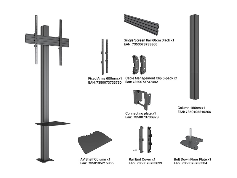 180cm, integrierte Kabelführung, stufenlose Höhenverstellung, AV Konsole mit 5 Kg. Tragkraft,
