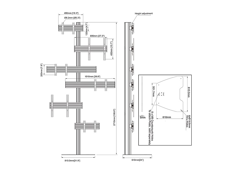 schwarz,VESA 50 - 400x400mm, max. 6x30 kg