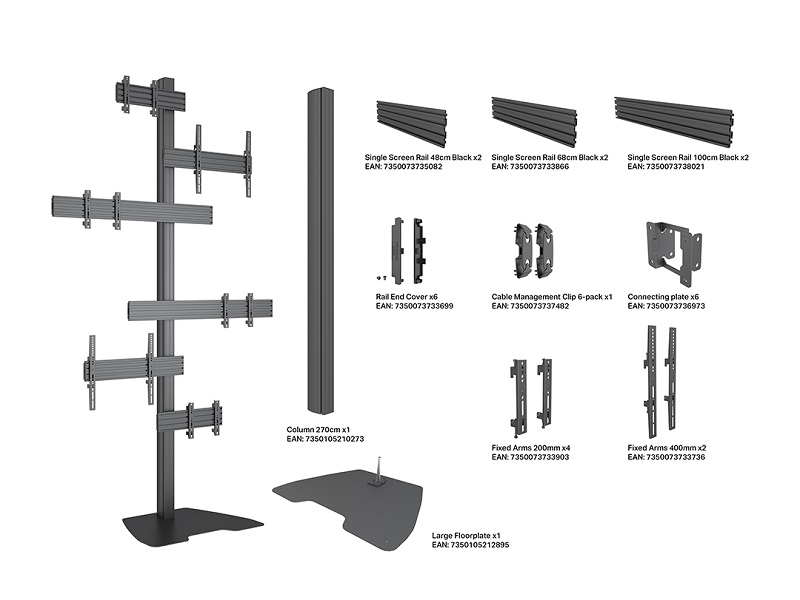 Bodenständer 6x, von 40"-65", Stahl/Aluminium